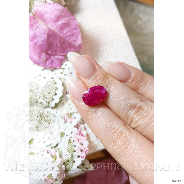 An ode to opulence, this unique oval-shaped ruby measures 14.13 x 9.88 x 5.65 mm and boasts a captivating mixed brilliant cut. The artistry of the cut enhances the ruby's inherent properties, allowing light to interact with its vivid hues in a dance of kaleidoscopic reflection. As light enters, each facet acts as a mirror, bouncing back concentrated beams of color that command attention with their brilliance. This skillful cutting technique reveals a depth and intensity in the gemstone's palette, highlighting its vivid color intensity that is both enthralling and singular. Unlike ordinary stones, this ruby possesses a vivid intensity that creates a glow, proclaiming its rarity and creating a tapestry of enchantment at every angle.