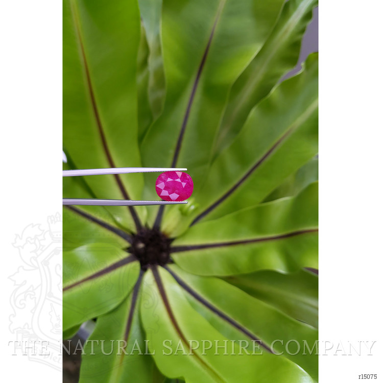 This particular ruby has undergone heat treatment, a common practice in the gem industry that enhances the color and clarity of the stone, ensuring it dazzles with optimal brilliance. Despite a clarity grade of “included,” evaluated at an eye level, the intense color saturation remains the focal point, affirmed by an excellent polish that forms a crystal-clear surface—effortlessly smooth to touch and exceptionally finished. Clients of The Natural Ruby Company who value technical mastery and geological rarity will find this gemstone a perfect embodiment of nature’s grandeur, enhanced through skilled human craftsmanship, ready to become a cherished centerpiece of any fine jewelry creation.