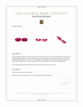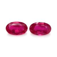 The beautiful, transparent pair of rubies are 0.23 carats and 0.25 carats respectively. They are oval shape pinkish red rubies, with the dimensions of 5.00 x 3.08 x 1.72 mm and 4.98 x 3.03 x 1.85 mm and are mixed brilliant cut, have a clarity grade of very slightly included (evaluated at eye level), vivid color intensity, and an excellent polish. The origin of this pair of rubies is Mozambique.