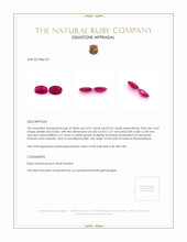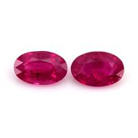 The beautiful, transparent pair of rubies are 0.47 carats and 0.53 carats respectively. They are oval shape pinkish red rubies, with the dimensions of 6.06 x 4.03 x 2.27 mm and 6.08 x 3.84 x 2.58 mm and are mixed brilliant cut, have a clarity grade of slightly included (evaluated at eye level), intense color intensity, and an excellent polish. The origin of this pair of rubies is Mozambique.