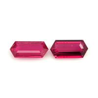 At The Natural Ruby Company, we are pleased to present an exquisite pair of pinkish-red fancy-shaped rubies, meticulously sourced from the renowned mines of Mozambique. These gems weigh 0.54 carats and 0.58 carats, with dimensions of 7.39 x 3.38 x 1.88 mm and 7.29 x 3.47 x 2.14 mm, respectively. Their step cut not only enhances their inherent brilliance but also amplifies their vivid color intensity, making them a remarkable choice for sophisticated jewelry pieces. With a clarity grade of slightly included when assessed at eye level, these rubies showcase a mesmerizing sparkle and an outstanding polish, with heat treatment applied to maximize their alluring hue and clarity.
