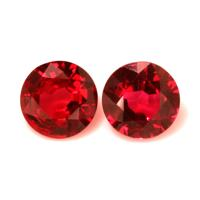 The beautiful, transparent pair of rubies are 0.65 carats and 0.59 carats respectively. They are round shape red rubies, with the dimensions of 5.28 x 5.23 x 2.84 mm and 5.30 x 5.24 x 2.53 mm and are mixed brilliant cut, have a clarity grade of eye clean (evaluated at eye level), vivid color intensity, and an excellent polish. The origin of this pair of rubies is Mozambique.