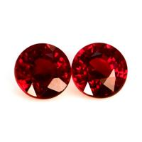 The beautiful, transparent pair of rubies are 0.66 carats and 0.66 carats respectively. They are round shape red rubies, with the dimensions of 4.92 x 4.87 x 3.41 mm and 4.92 x 4.87 x 3.41 mm and are mixed brilliant cut, have a clarity grade of eye clean (evaluated at eye level), vivid color intensity, and an excellent polish. The origin of this pair of rubies is Tanzania.
