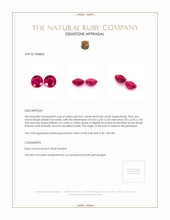 Introducing an exceptional pair of round pinkish-red rubies from The Natural Ruby Company that stands out in the crowded market for their unparalleled versatility and quality. Sourced from the mineral-rich grounds of Mozambique, these rubies are more than just stones; they are a testament to nature's elegance. With a carat weight of 0.67 and 0.68 respectively, and dimensions measuring 5.02 by 5.05 by 3.02 mm and 4.95 by 4.96 by 2.96 mm, these mixed brilliant cut rubies are crafted to perfection. The slight inclusions, visible only upon close inspection at eye level, ensure each piece retains its character while offering a breathtaking allure with intense color intensity and excellent polish.