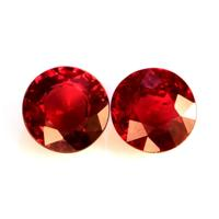 The beautiful, transparent pair of rubies are 0.67 carats and 0.73 carats respectively. They are round shape red rubies, with the dimensions of 5.15 x 5.05 x 3.06 mm and 5.20 x 5.16 x 3.07 mm and are mixed brilliant cut, have a clarity grade of eye clean (evaluated at eye level), vivid color intensity, and an excellent polish. The origin of this pair of rubies is Tanzania.