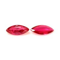 The beautiful, transparent pair of rubies are 0.52 carats and 0.93 carats respectively. They are marquise shape pinkish red rubies, with the dimensions of 9.06 x 4.22 x 1.59 mm and 8.90 x 3.94 x 3.31 mm and are mixed brilliant cut, have a clarity grade of eye clean (evaluated at eye level), intense color intensity, and an excellent polish. The origin of this pair of rubies is Mozambique.