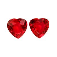 The beautiful, transparent pair of rubies are 0.80 carats and 0.88 carats respectively. They are heart shape red rubies, with the dimensions of 6.19 x 6.10 x 2.70 mm and 6.11 x 6.08 x 2.97 mm and are mixed brilliant cut, have a clarity grade of very slightly included (evaluated at eye level), vivid color intensity, and an excellent polish. The origin of this pair of rubies is Mozambique.