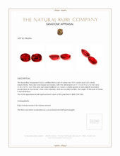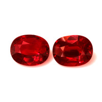 The beautiful, transparent AGL certified Red pair of rubies are 5.01 carats and 5.03 carats respectively. They are oval shape red rubies, with the dimensions of 11.14 x 8.93 x 5.16 mm and 11.35 x 8.75 x 5.67 mm and are mixed brilliant cut, have a clarity grade of very slightly included (evaluated at eye level), vivid color intensity, and an excellent polish. The origin of this pair of rubies is Mozambique.