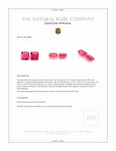 Each ruby has undergone a meticulous heat treatment, enhancing its natural beauty and revealing its extraordinary hidden potential. With a clarity grade of slightly included (evaluated at eye level), these stones offer a unique charm that is both sophisticated and authentic. The clean, precise lines of the Asscher cut ensure that the light is reflected with unparalleled brilliance, showcasing the rubies' reflective qualities. This level of craftsmanship transforms these gems into a statement piece that will not only complement but elevate any jewelry collection. As part of an elite circle, ownership of these unique rubies signifies a refined taste for the extraordinary, a privilege reserved for a select few.