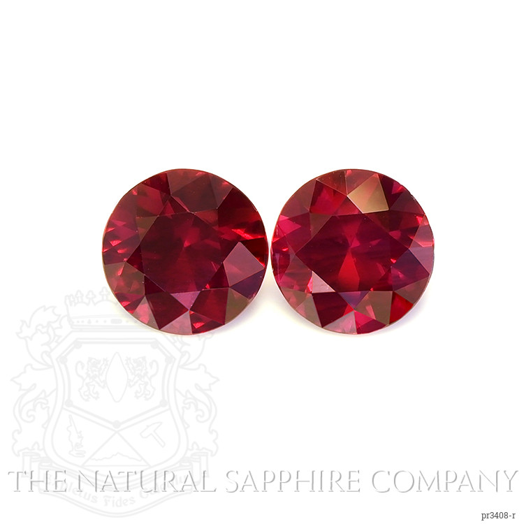 The beautiful, transparent pair of rubies are 1.20 carats and 1.24 carats respectively. They are round shape red rubies, with the dimensions of 6.50 x 6.40 x 4.10 mm and 6.50 x 6.50 x 4.10 mm and are mixed brilliant cut, have a clarity grade of eye clean (evaluated at eye level), vivid color intensity, and an excellent polish. The origin of this pair of rubies is Mozambique.