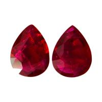 The beautiful, transparent pair of rubies are 1.38 carats and 1.41 carats respectively. They are pear shape purplish red rubies, with the dimensions of 9.06 x 6.82 x 2.53 mm and 9.06 x 6.90 x 2.50 mm and are mixed brilliant cut, have a clarity grade of slightly included (evaluated at eye level), vivid color intensity, and an excellent polish. The origin of this pair of rubies is Mozambique.