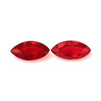 The beautiful, transparent pair of rubies are 4.00 carats and 4.00 carats respectively. They are marquise shape red rubies, with the dimensions of 14.70 x 7.01 x 4.58 mm and 14.50 x 7.19 x 4.50 mm and are mixed brilliant cut, have a clarity grade of very slightly included (evaluated at eye level), vivid color intensity, and an excellent polish. The origin of this pair of rubies is Mozambique.