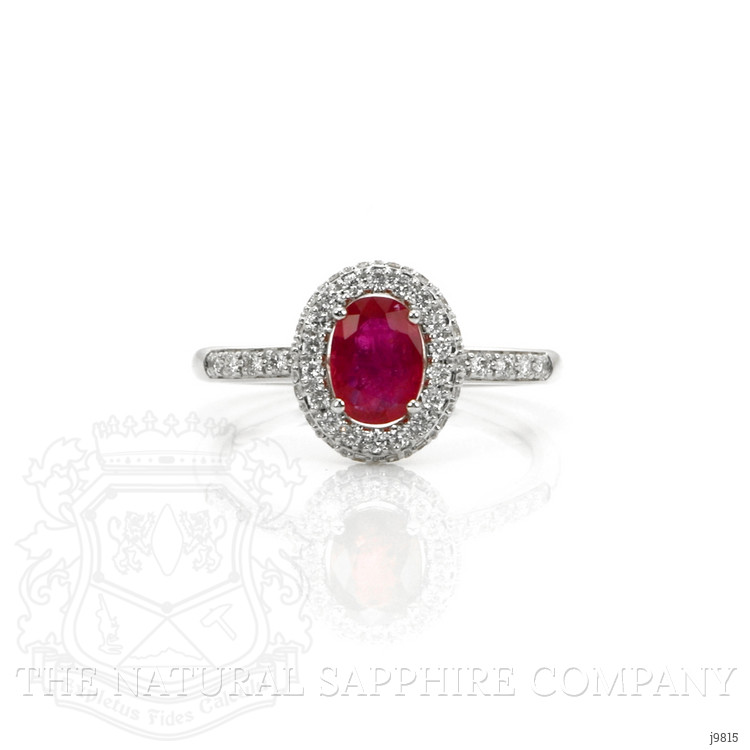 0.90 Ct. Ruby Natural Diamond Pave Ring, 18K White Gold