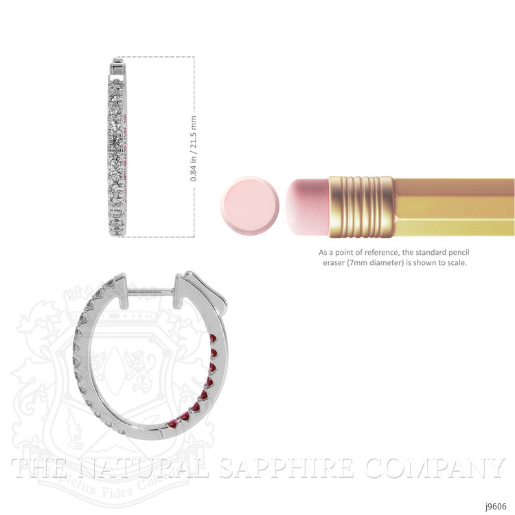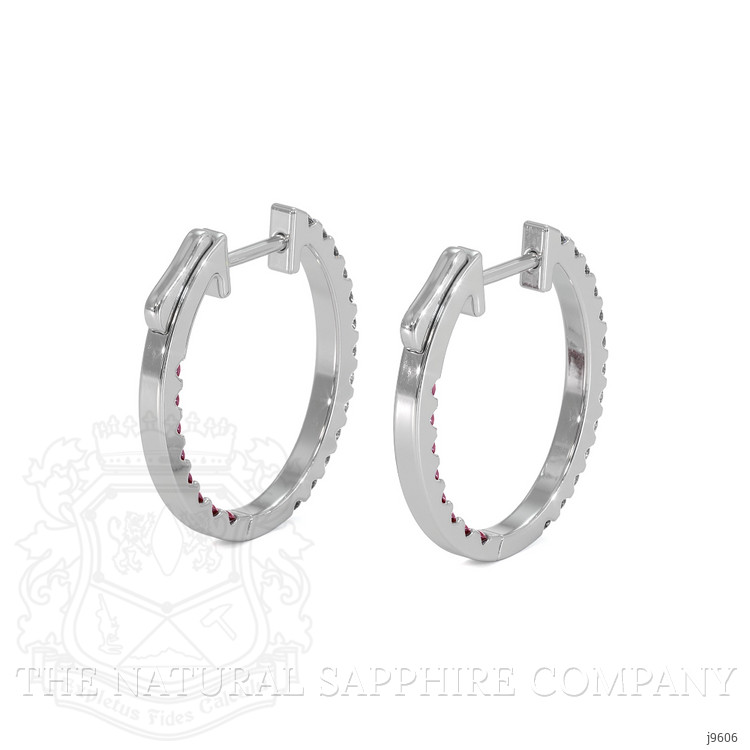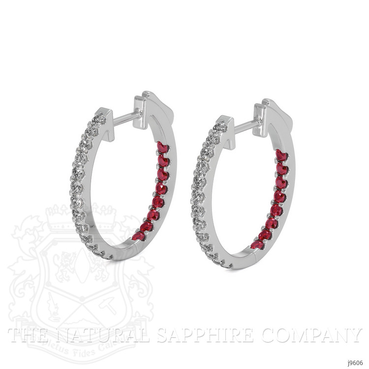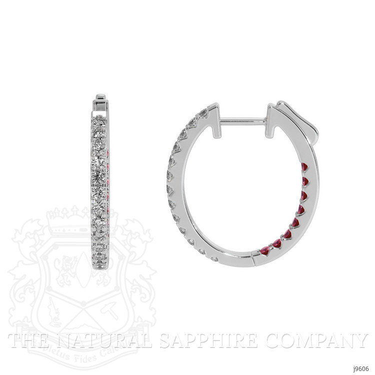 0.44 Ct.Tw. Ruby Natural Diamond Hoops Earrings, 18K White Gold