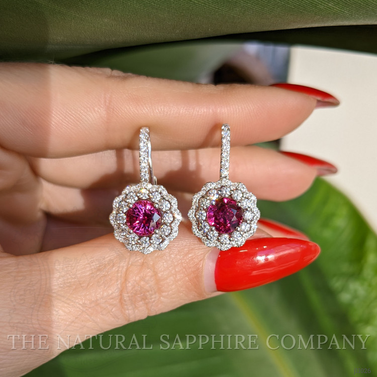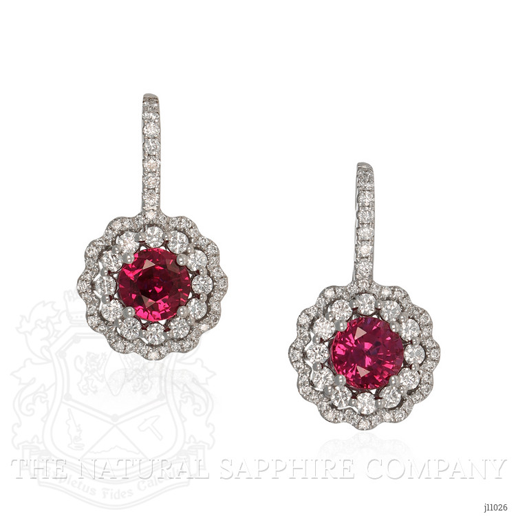 2.74 Ct.Tw. Ruby Natural Diamond Pave Earrings, 18K White Gold