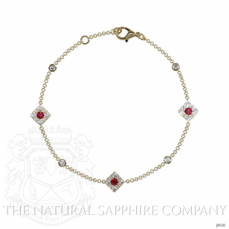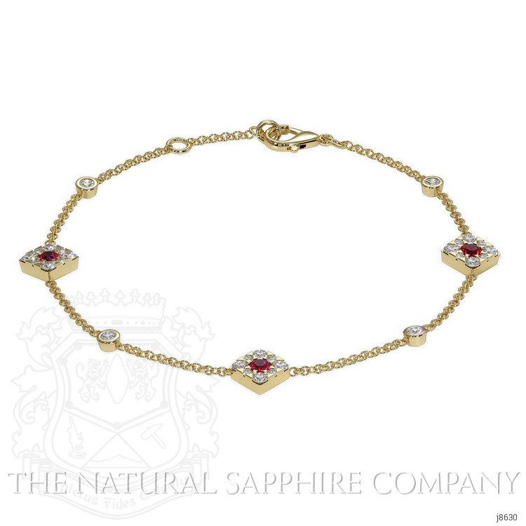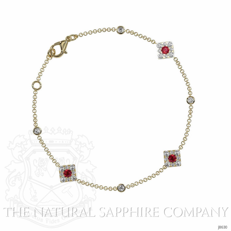 0.23 Ct.Tw. Ruby Natural Diamond Halo Bracelet, 14K Yellow Gold