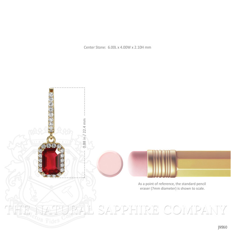 Introducing a pair of exquisite earrings designed to perfectly capture the essence of elegance and individuality. At the heart of these stunning pieces, The Natural Ruby Company presents a magnificent pair of emerald cut red Rubies, totaling 1.15 carats. Their brilliant red hue, coupled with dimensions of 6.00 x 4.00 x 2.10 mm, makes for a striking centerpiece that captivates the eye and inspires conversation. Crafted with a heat-treated transparent quality, these Rubies originate from the rich soils of Mozambique, portraying an unparalleled vivid color intensity and an excellent polish. Free from visible inclusions, these eye-clean stones reflect the pure passion and commitment behind their quality.
