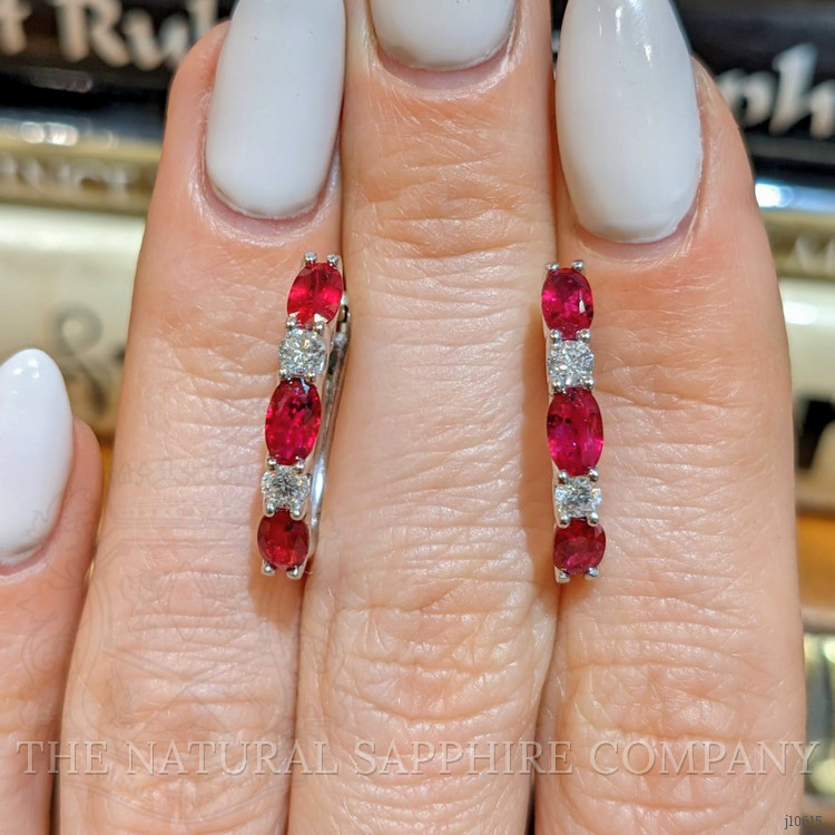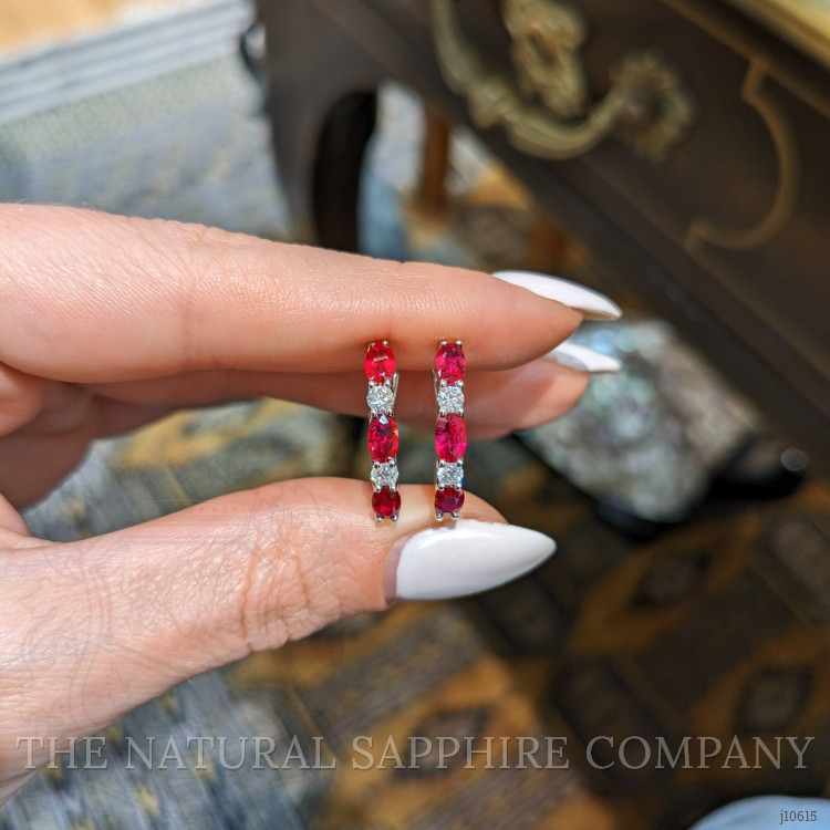 Elegant in their simplicity yet striking in their impact, these exquisite 14K white gold earrings embody the epitome of luxury. Each earring is skillfully crafted to reflect the utmost sophistication, akin to the precision and artistry employed by the world's most esteemed high-end jewelry houses. With a design that captures the essence of timeless beauty, these earrings elevate the notion of elegance to an entirely new level. The glistening red gemstones, meticulously arranged, exude a rich allure that catches the eye and captivates the heart. Between each fiery red stone, tiny yet brilliant diamonds sparkle with unrivaled clarity, enhancing the splendor of this masterpiece.The craftsmanship of these earrings offers an experience comparable to that of acquiring a piece of legendary artisanal heritage. Artisans, with their deft touch and years of expertise, have ensured that every single detail is impeccable, mirroring the devotion one would expect from celebrated jewelers. The smooth curvature of the white gold hugs each stone lovingly, creating a seamless harmony that is as much a work of art as it is a piece of fine jewelry. Wearing these earrings is akin to enveloping oneself in a legacy of beauty, a testament to one's refined taste and status.To own such an alluring pair is more than a mere acquisition. It is an indulgence in the art of the sublime, a symbol of discernment interpreted through the measuring lens of luxury. With these earrings, you do not just wear jewelry; you embrace the whispers of elegance and the gentle caress of an exquisitely crafted legacy. Each glance at these earrings is a reminder of the prestige and delight they bring, assuring you that you possess something truly magnificent.