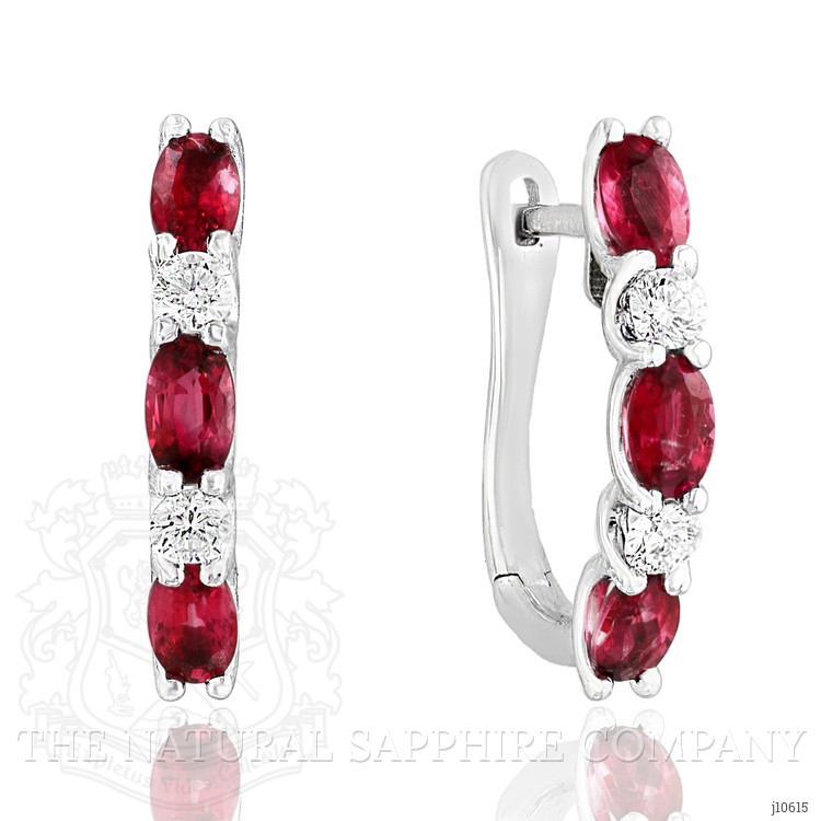 1.67 Ct.Tw. Ruby Natural Diamond Hoops Earrings, 14K White Gold