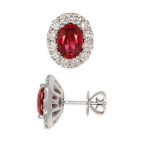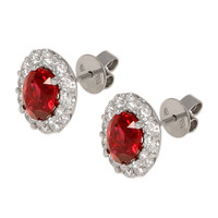 4.52 Ct.Tw. Ruby Natural Diamond Pave Earrings, 18K White Gold