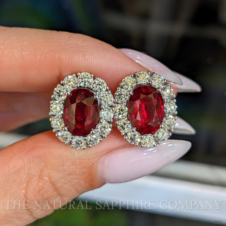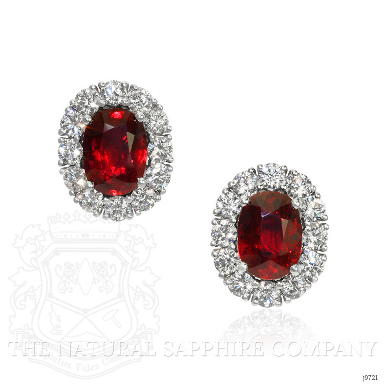 6.46 Ct.Tw. Ruby Natural Diamond Pave Earrings, 18K White Gold