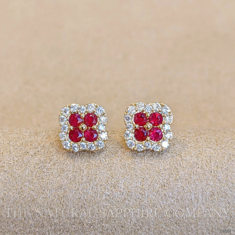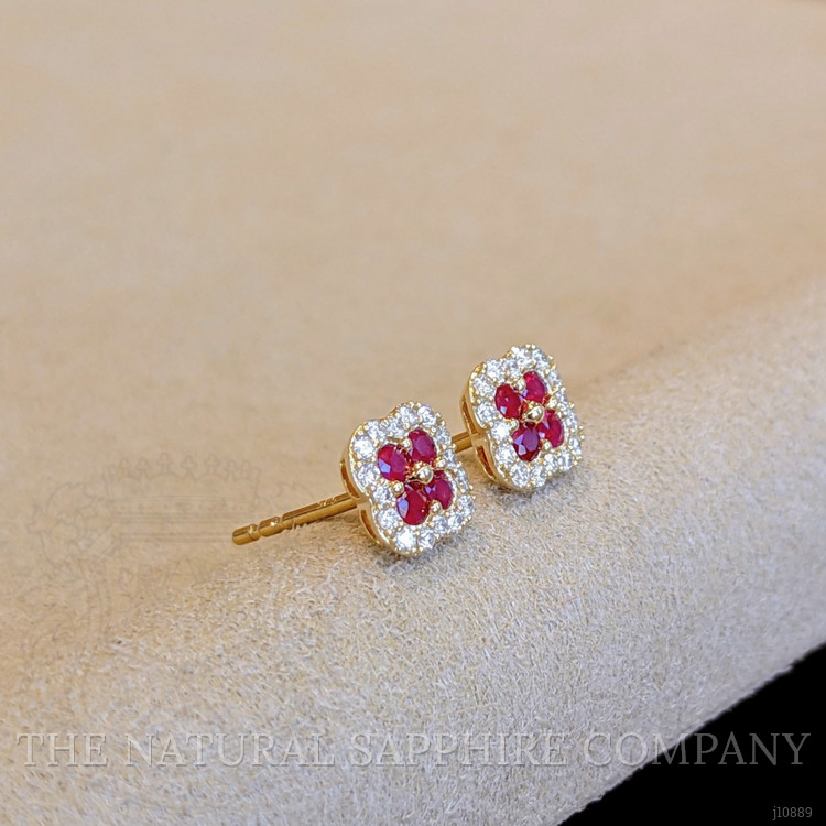 0.30 Ct.Tw. Ruby Natural Diamond Studs Earrings, 14K Yellow Gold