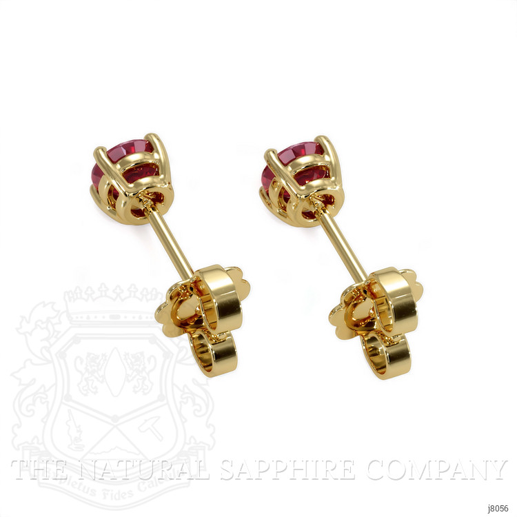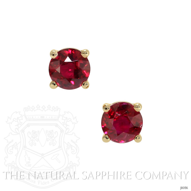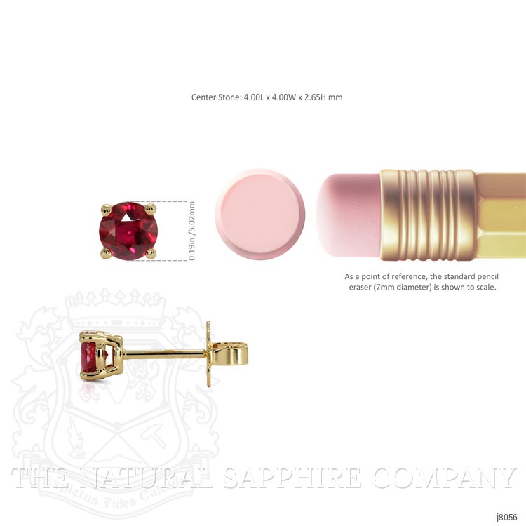 In the world of high fashion and distinguished elegance, The Natural Ruby Company stands as a beacon of luxury and refinement, presenting an unparalleled creation that captures the essence of beauty in its purest form. Our exquisite earrings, set in lustrous 14K yellow gold and adorned with a pair of mesmerizing transparent Rubies, are testament to the artistry and dedication that define our craft. Each Ruby, of 0.65 total carat weight, is sourced from the lush terrains of Mozambique, whispering tales of ancient origins and undiscovered wonders. The gems, painstakingly shaped into a harmonious round form, measure 4.00 x 4.00 x 2.65 mm, serving as a glorious embodiment of nature's grace and magnificence.