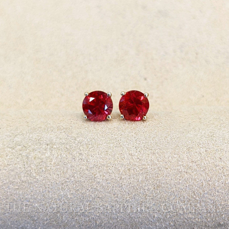 The centerpiece of these exquisite earrings is a stunning pair of transparent rubies, together weighing 0.65 carats, sourced from the renowned gem-rich land of Mozambique. The allure of Mozambique rubies is in their exceptional color and quality, which has gained them significant acclaim among gem enthusiasts and collectors. These rubies are expertly crafted into a round shape with dimensions of 4.00 x 4.00 x 2.65 mm. Each ruby is meticulously cut in a mixed brilliant style, designed to maximize their display of vivid color and brilliance. This cutting style combines the precision and light-catching facets of brilliant cuts, enhancing the rubies' ability to captivate and hold the viewer's eye.