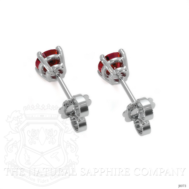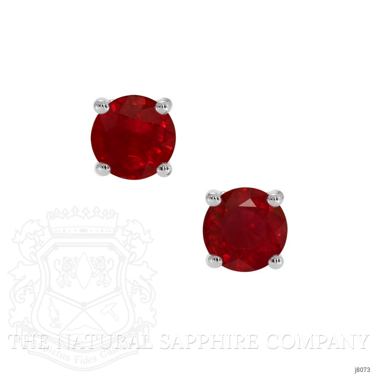 Renowned for producing some of the most resplendent gemstones in the world, Mozambique has delivered these striking rubies that captivate with their vivid color intensity and impeccable craftsmanship. At 0.95 total carat weight, they stand as a testament to the natural beauty and rich heritage of their origin. With dimensions of 4.50 x 4.50 x 2.85 mm and a mixed brilliant cut, these round-shaped red gemstones catch the light in an extraordinary dance that only brilliant craftsmanship and the best natural resources can create. Enhanced with heat treatment to highlight their innate splendor, these rubies boast an eye-clean clarity grade, ensuring that their pure essence is unmarred. The rubies' vibrant color gains even more distinction and appeal, standing proud against the refined and luxurious backdrop of 14K white gold settings.