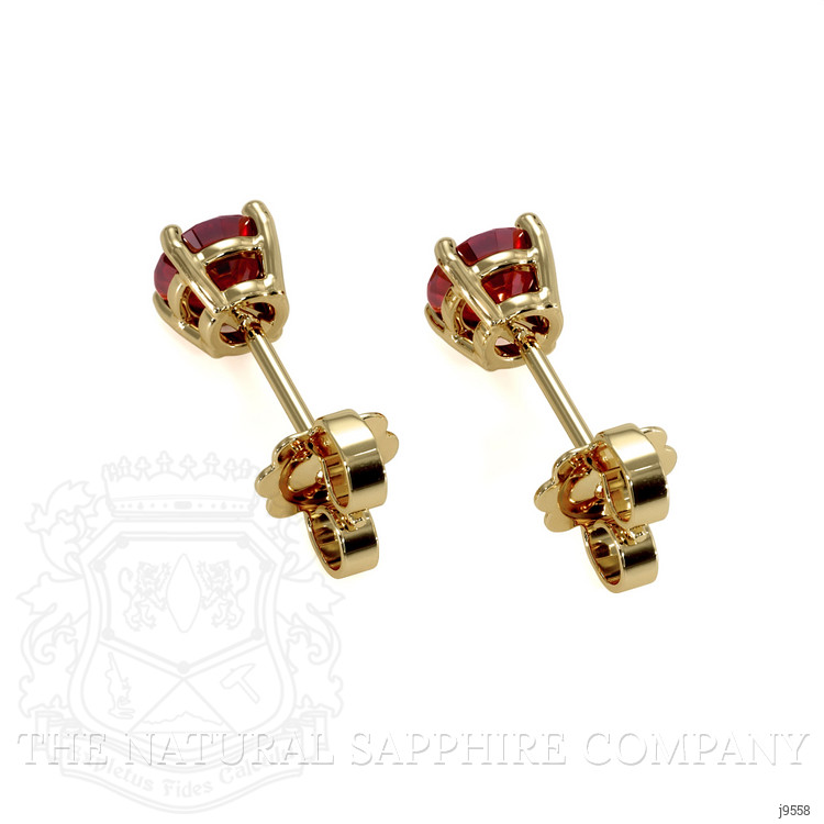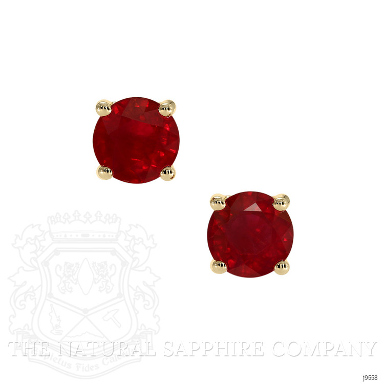 Envision these earrings on a distinguished evening, where the glittering lights of a celebration reflect off the brilliant surface of our rubies. With a total carat weight of 0.95, each round-shaped ruby is meticulously cut into a mixed brilliant form, conferring a dazzling display that captivates the eye at every angle. The dimensions, precisely 4.50 x 4.50 x 2.85 mm, have been selected to create a harmonious symphony of elegance and balanced proportion. Their clarity, celebrated for being entirely eye clean, allows the rubies to come alive with a vivid color intensity that speaks volumes of their premium nature. Enhanced by a superior heat treatment, these jewels achieve a hue so breathtaking that it feels as though they capture the passionate essence of their African origins. Sourced from Mozambique, these rubies articulate a journey from the fiery heart of the Earth to the pinnacle of human craftsmanship, redefining luxury with polished finality akin to their own lustrous finish.