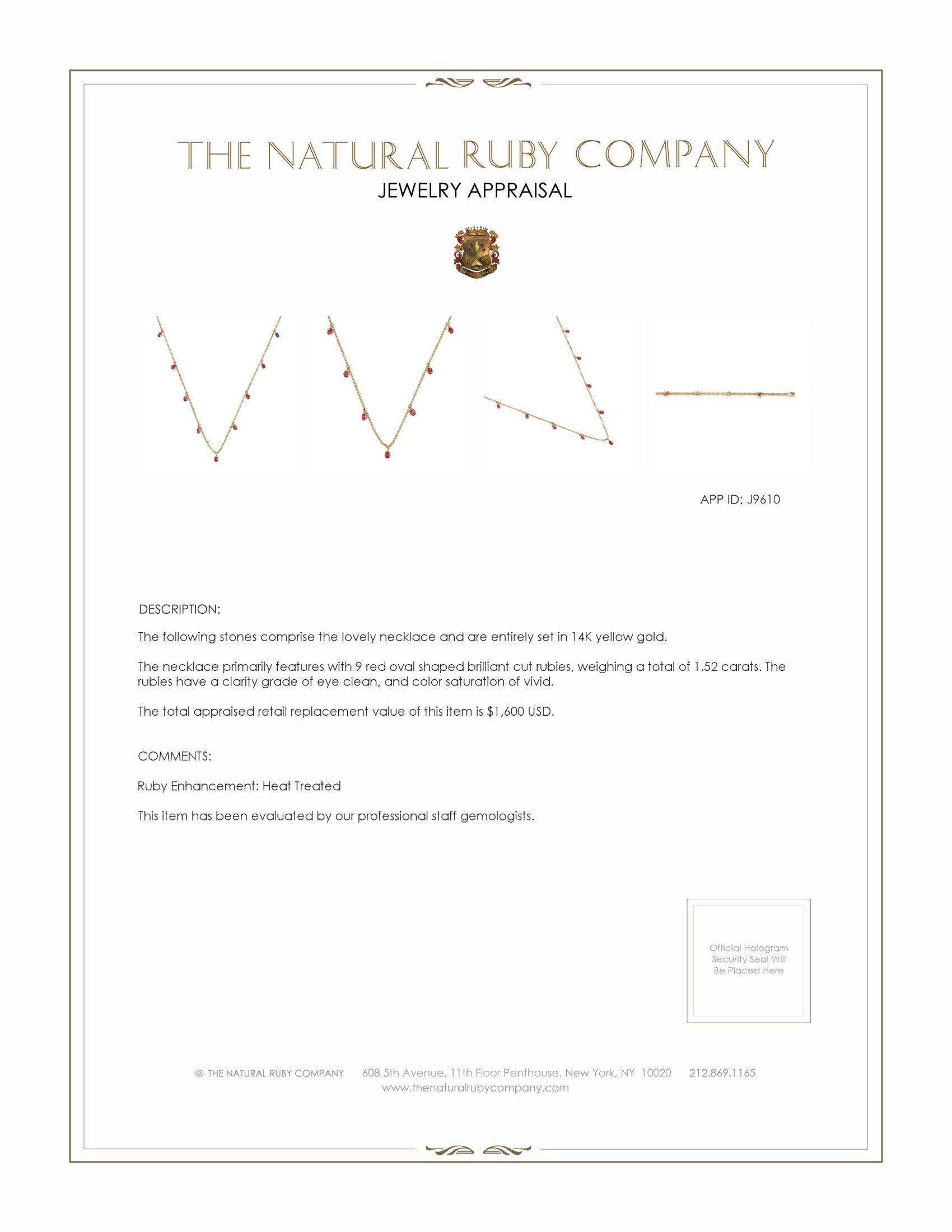 Our packaging, reports and documentation is refined, concise and reputable. Our reputation is our greatest asset, rest assured we don’t cut corners, please review our extensive reporting and specialty packaging for all our ruby items.