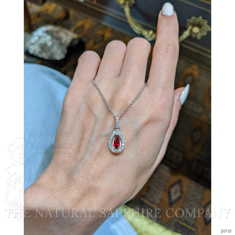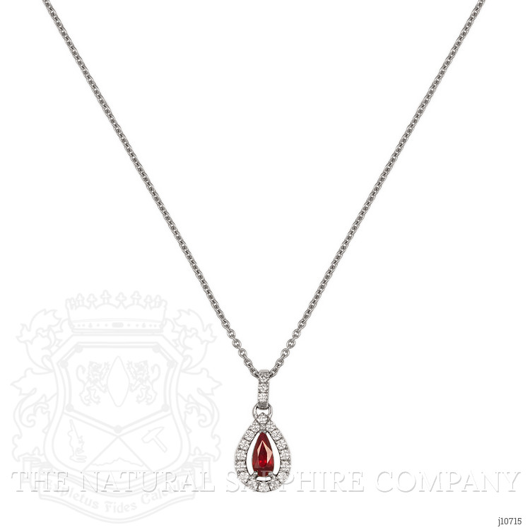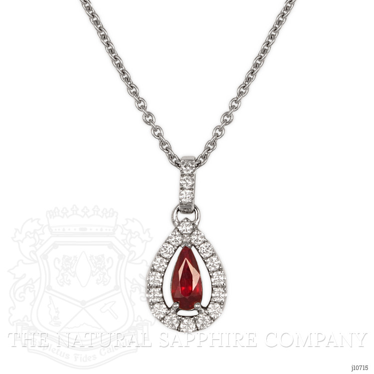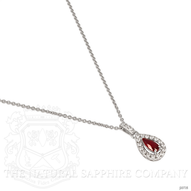 0.53 Ct. Ruby Natural Diamond Halo Pendant, 18K White Gold