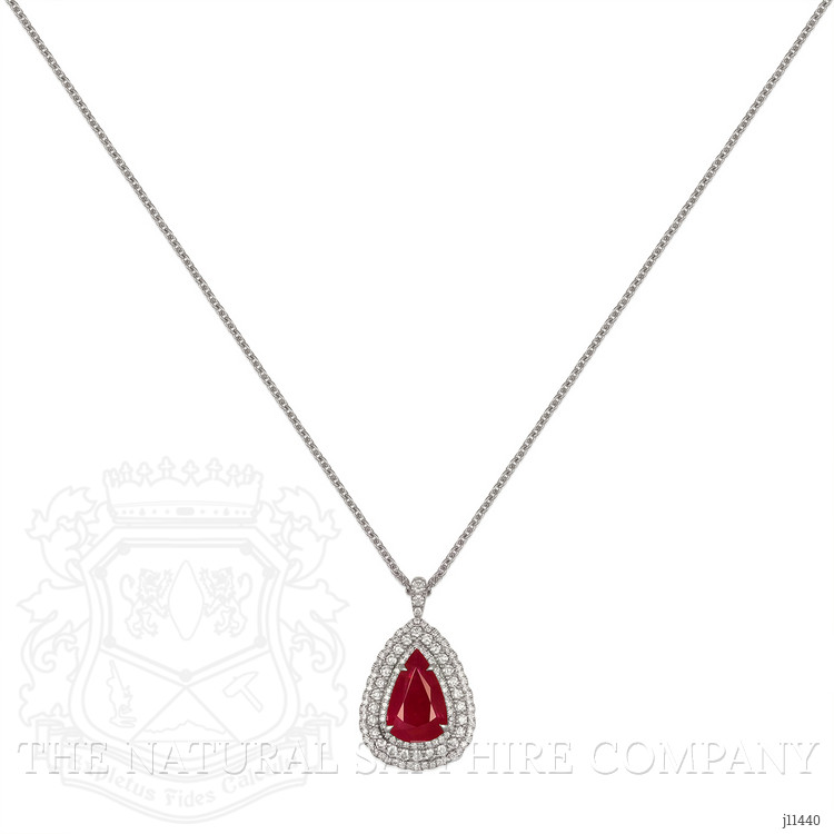Discover a pendant that captures the essence of elegance and timeless beauty, radiating charm and sophistication from every angle. The centerpiece of this exquisite piece is the luminous ruby, known throughout history as the stone of love and passion. Unlike other pendants on the market, our pendant not only serves as a striking display of craftsmanship but also embodies deep symbolism. The rich red ruby is enveloped in a halo of shimmering diamonds, each one meticulously placed in 18K white gold, offering an allure that is both luxurious and enduring.