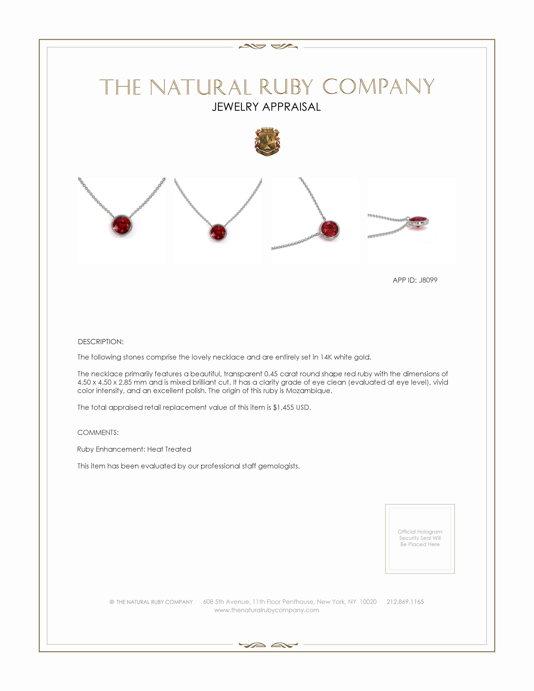 0.45 Ct. Ruby Bezel Necklace, 14K White Gold