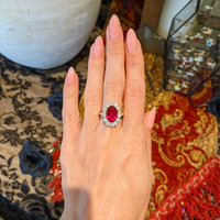 4.00 Ct. Ruby Natural Diamond Halo Ring, 18K Yellow Gold