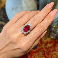 Choosing this ring is choosing an heirloom that resolves your desire for beauty, meaning, and everyday practicality, whether you are planning a proposal, celebrating a milestone, or adding a remarkable piece to a discerning collection. The composition of a bold central gemstone surrounded by brilliant accents ensures that the piece can stand alone as a statement ring, or be paired beautifully with a complementary band for a complete bridal set. For the collector who values provenance and craftsmanship, the piece offers classic proportions and expert finishing that make it suitable for display as well as wear. I am ready to assist you with selecting the right size and confirming any preferences you have for certification, care, and complementary styling, so that your purchase feels completely assured and personal. Let this ring end your search, let its brilliance be the outward sign of the inward promise you make, a lasting token of eternal love that you will be proud to give and proud to wear.