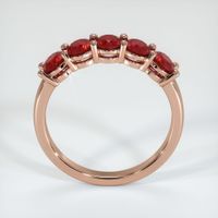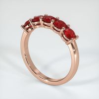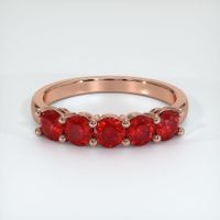 Introducing our elegantly crafted gemstone band, specifically designed for the discerning individual who appreciates timeless elegance and superior craftsmanship. This exquisite ring caters to a feminine aesthetic with its sophisticated design that seamlessly combines both luxury and subtlety. The band features five brilliantly cut round rubies, known for their captivating deep red hue, which adds a striking visual appeal to the piece. Each ruby is expertly set in a prong style, allowing maximum light exposure and enhancement of the gemstone's natural vibrancy. The prong setting not only showcases the stones magnificently but also ensures their security and durability over time.