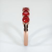 The band's high polish finish exudes a refined gleam, providing a beautiful backdrop that highlights the rich redness of the rubies. The high-polish technique involves meticulous smoothing and polishing, which results in a lustrous shine that is both eye-catching and sophisticated without being overtly flashy. This keeps the primary focus on the stones, while still adding a subtle layer of charm to the overall design. The simplicity of the style is further enhanced by the absence of additional adornments, which helps maintain a sense of classic elegance and reinforces the quality and purity of the materials used.